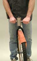 Alternatively, clamp a front wheel in the fork and stand over the fork