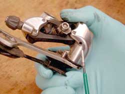 This article will discuss the overhaul of Shimano® and Campagnolo® rear derailleurs, which share many service features. The internal overhaul of the SRAM® X.0 rear derailleur will also be discussed. The Mavic® Mektronic will also be reviewed, although user service is limited. It should be noted that every model of every brand cannot be overhauled. See also related articles: